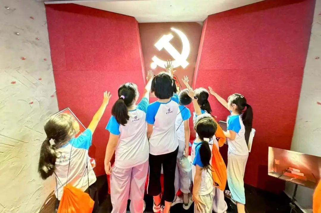 暑期托管班的爱国小课堂。