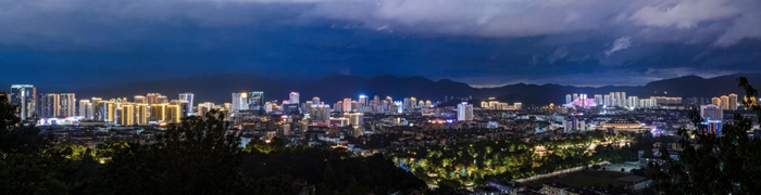 8月30日,浙江省台州市临海市台州府城墙上拍摄的临海市夜景(6张照片拼接)。新华网 钟奕摄
